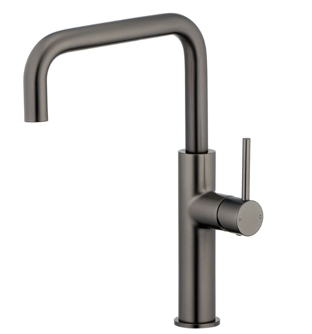 Mizu Drift Gooseneck Sink Mixer Tap Square Brushed Gunmetal (5 Star) Lead Free