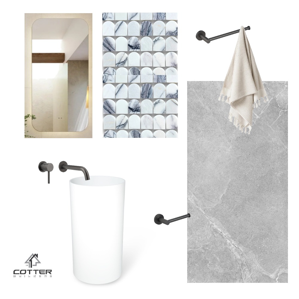 white gunmetal powder room simple clean fresh