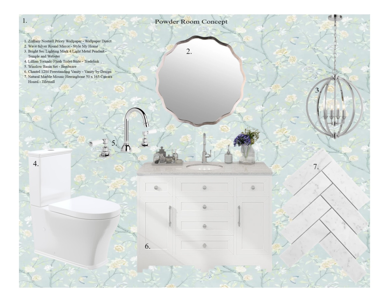 Wyralla Road Powder Room Concept Mood Board by botany75 on Style Sourcebook