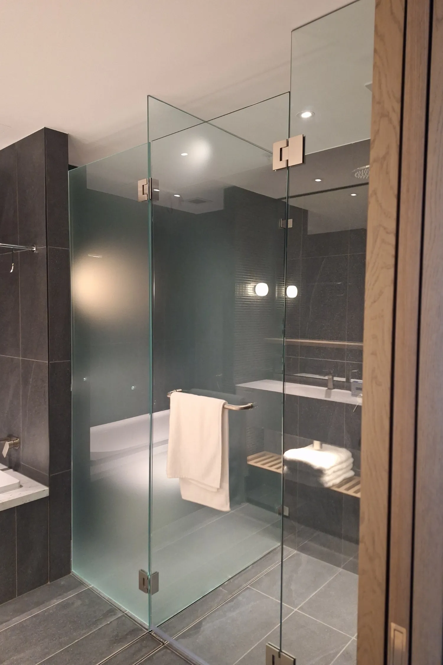 Behind those serene, refined spaces are the smaller details that bring them to life: the hardware that makes glass float, the finishes that tie everything together, and the tiny elements that make a bathroom feel designed, not just decorated.