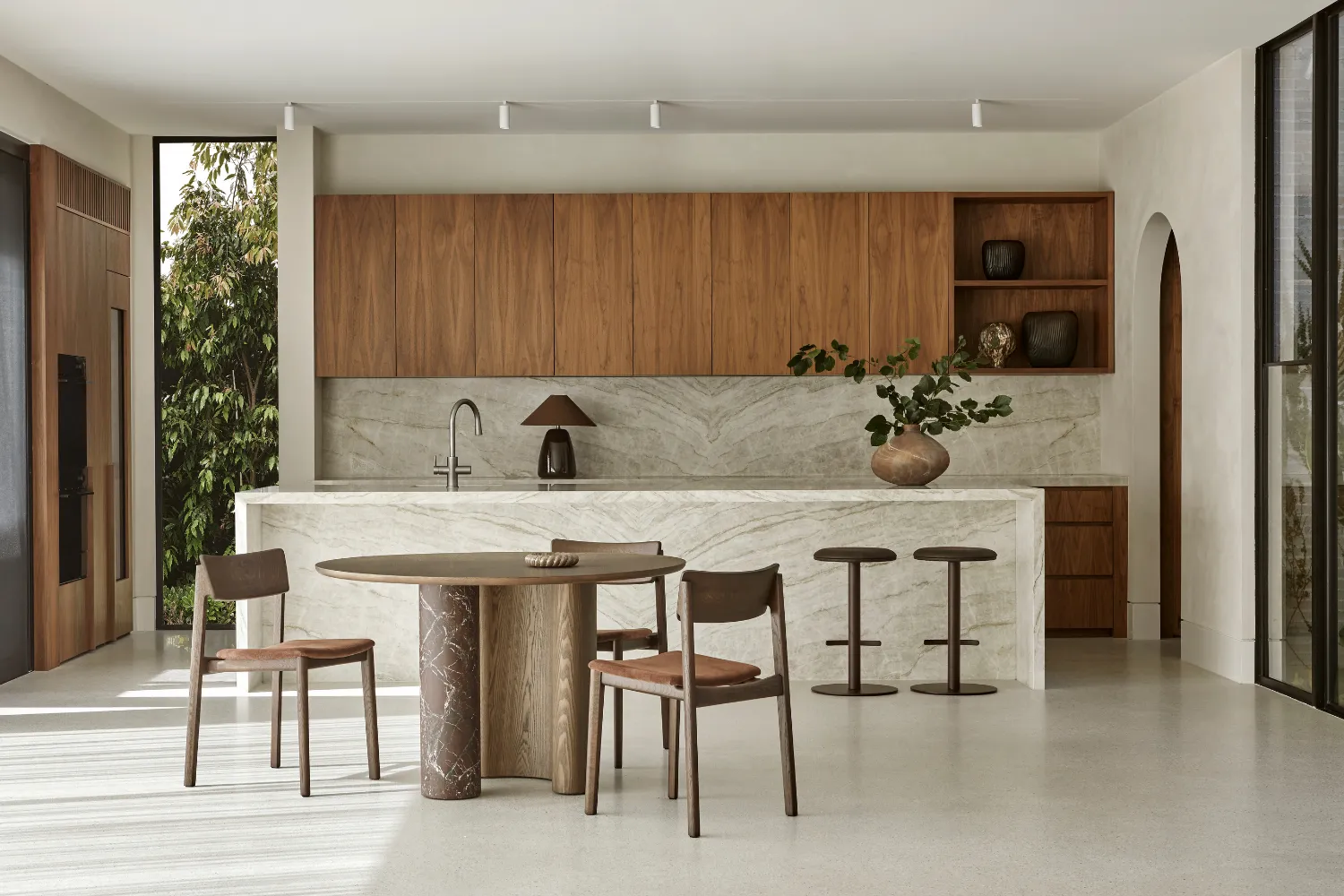 Think rounded profiles that dissolve harsh lines, textured upholstery in sun-baked, earthy hues, and material pairings that feel both grounded and expressive. It’s where timber meets marble, veneer meets glass, with stainless steel and ceramics introducing a subtle contrast. Let’s have a deeper look at some of the products that are available in our product library, for you to begin styling in your mood boards.