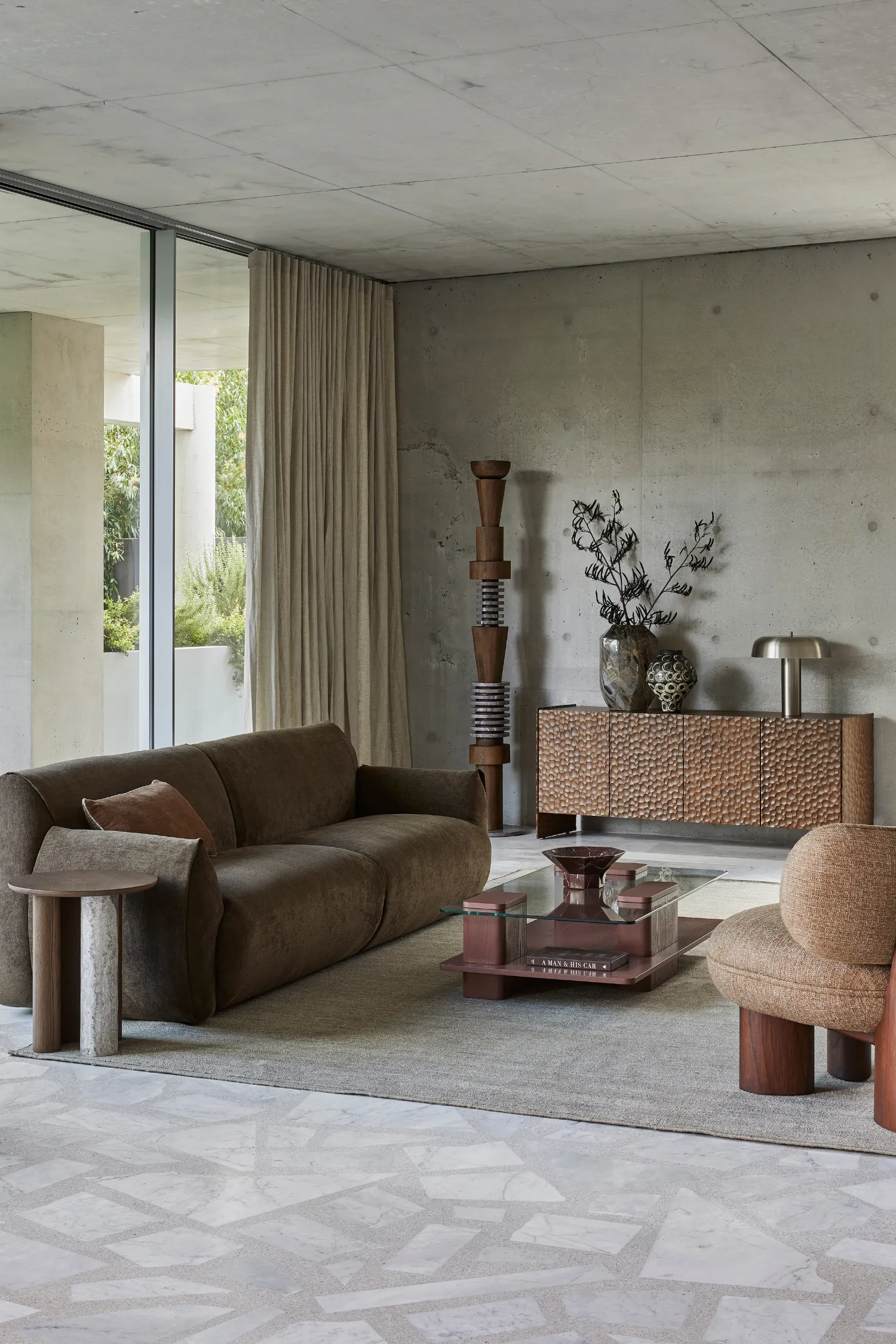 Mood board inspiration: Mix statement tables with quieter storage pieces to create rhythm within a room. Balance solid materials like marble and timber with soft upholstery and warm lighting for a space that feels curated yet liveable.