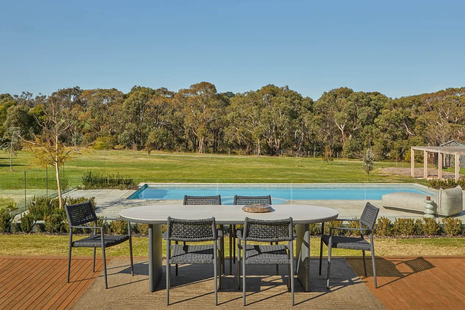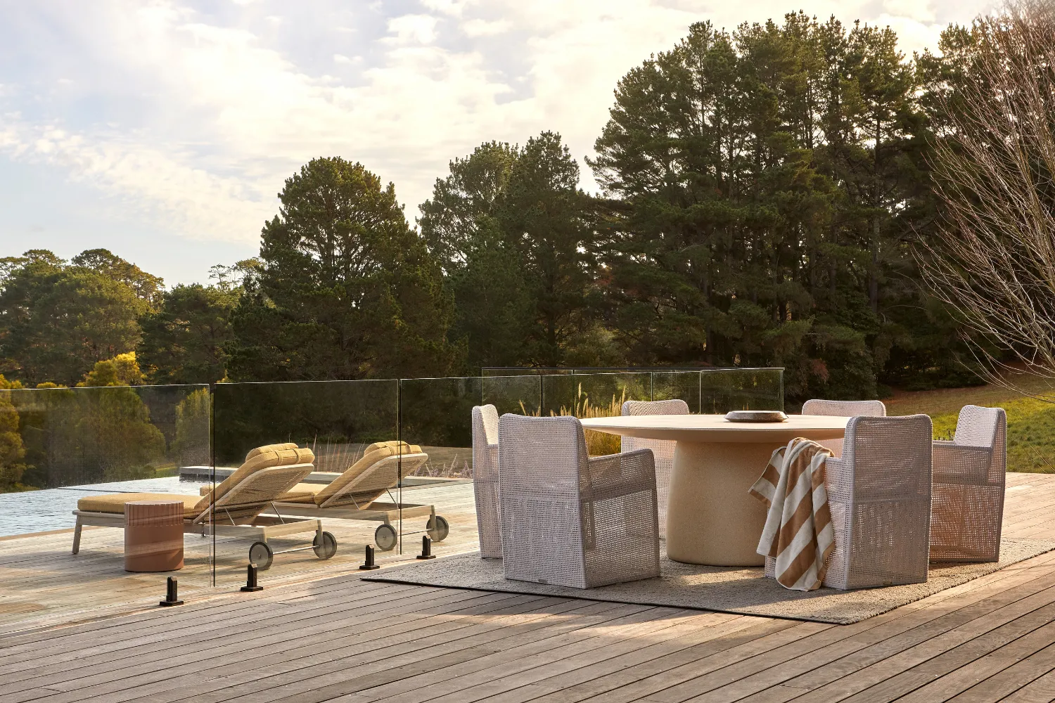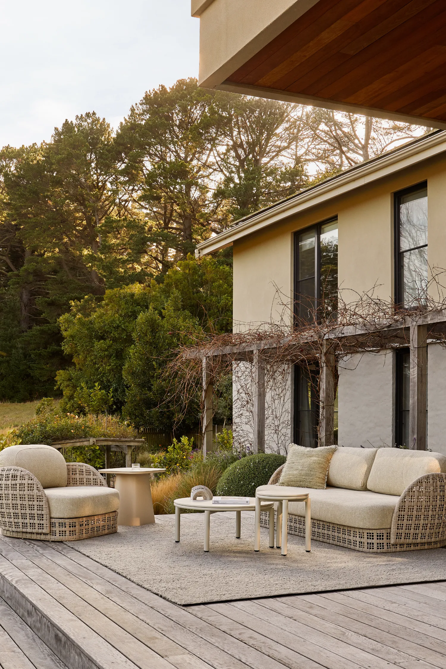 Design Tip: Embrace tonal layering and think soft whites, dune-inspired taupes, and muted greens. Style with ceramic accents, light timber decking, and soft linen textures for that effortlessly coastal calm.