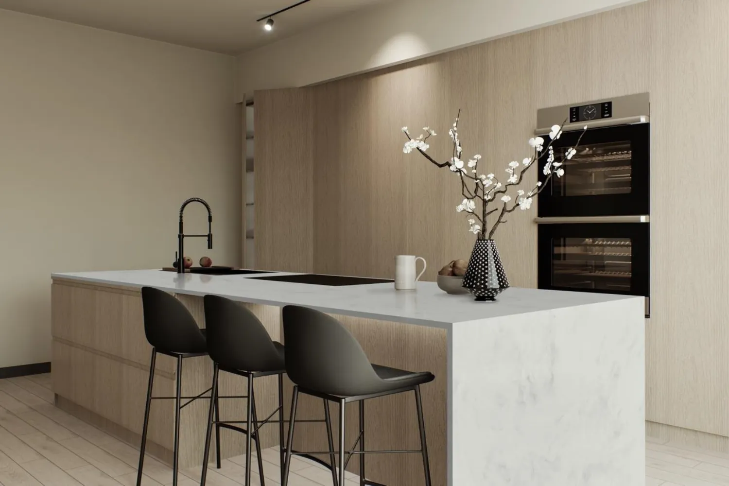 Styling tip: In bright schemes, layering textures like timber, textiles, and tactile organoid surfaces keeps spaces visually engaging without losing the airy, light-filled effect.