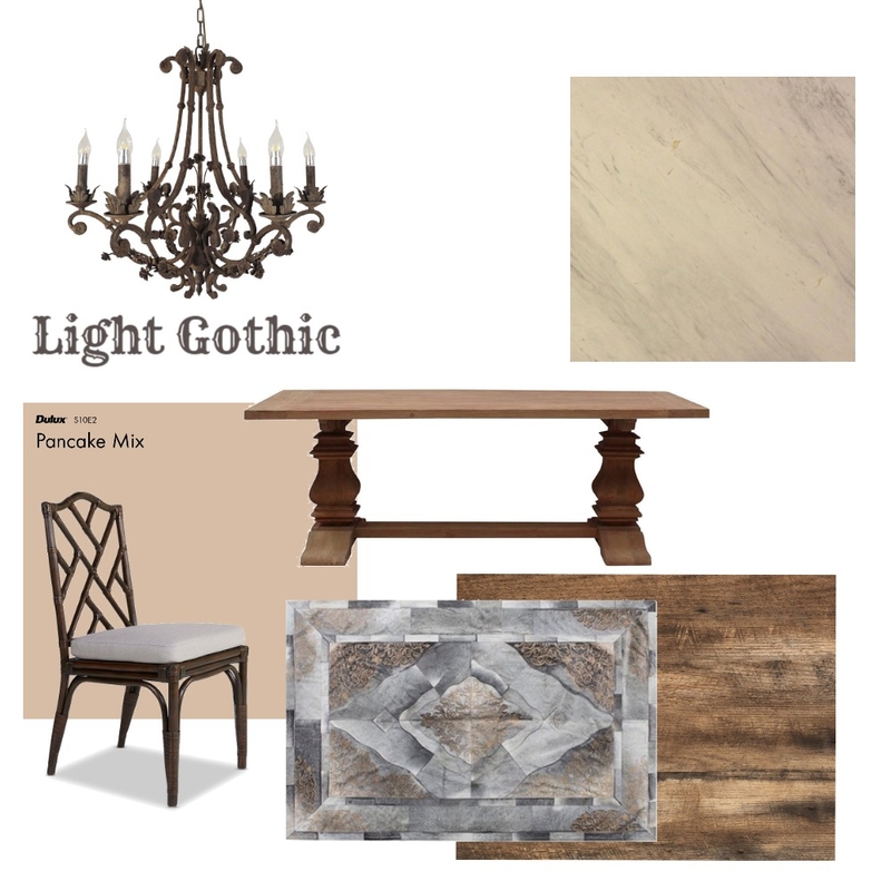 Dark wood heavy solid stone gothic dining room