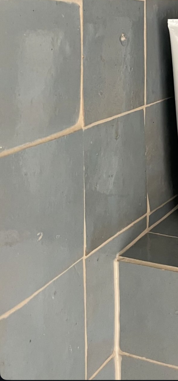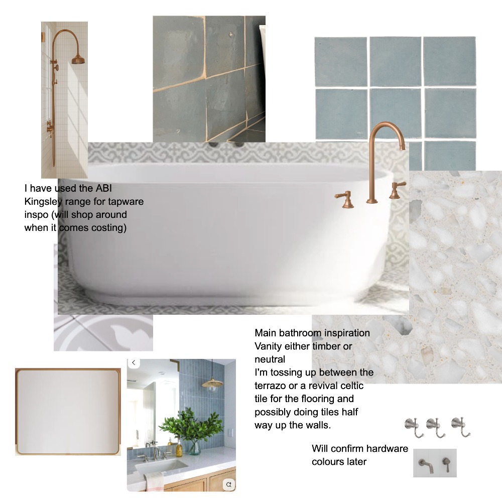 Traditional blue bathroom warmth timeless design blue tiles terrazzo revival celtic