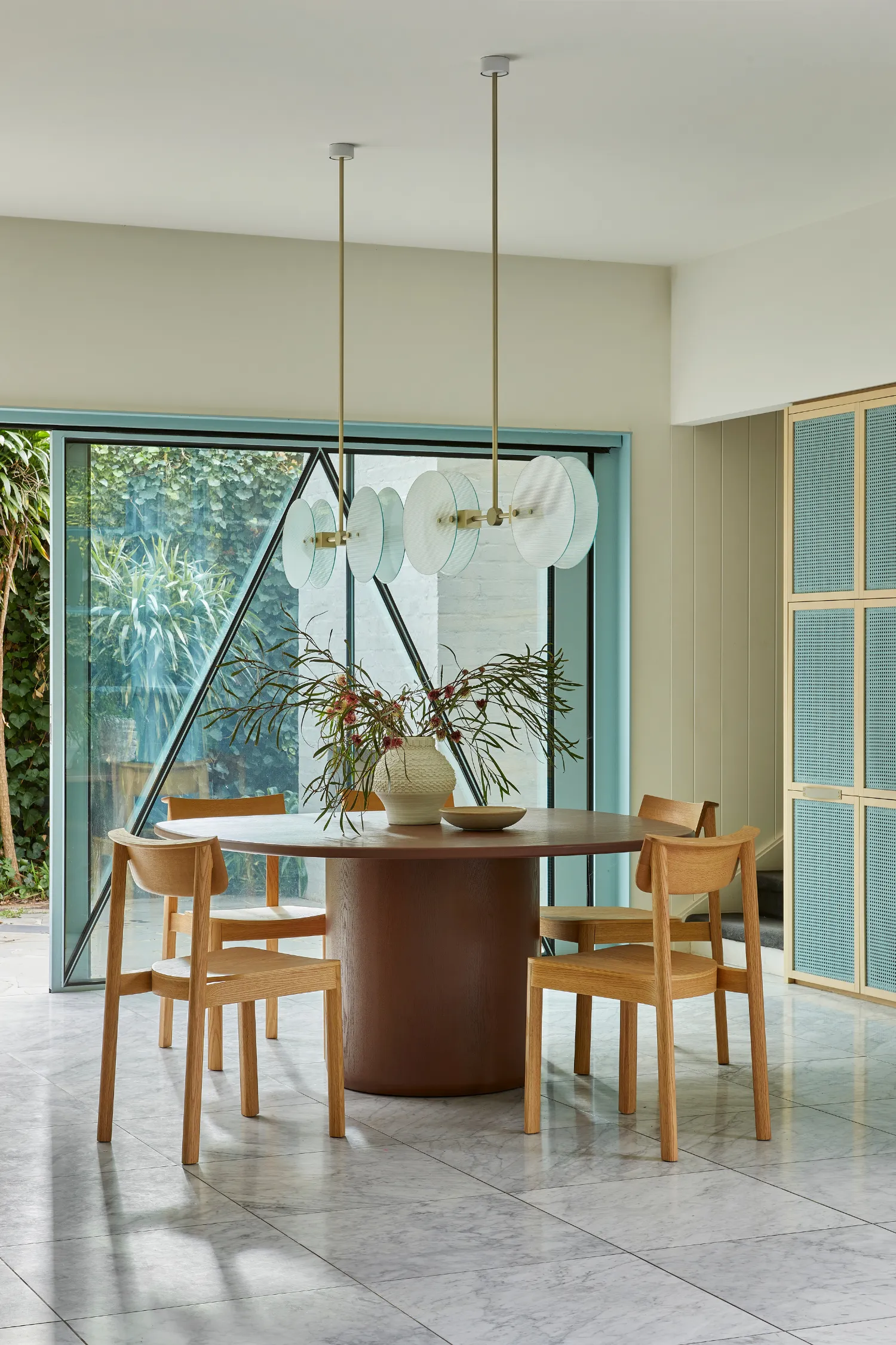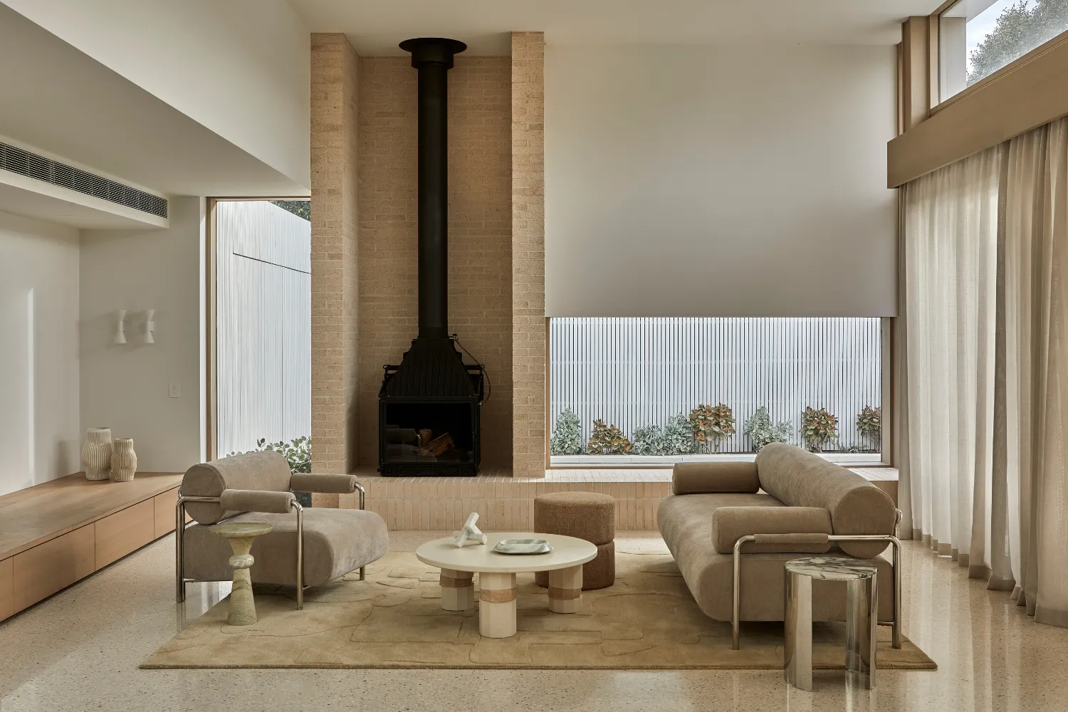 Even the homewares speak a new language. Wall art becomes architectural; modern totemic forms stand like quiet sculptures. Cushions and rugs soften spaces with layered textures, mixed stripes, and playful details that offer a counterpoint to clean-lined furniture. It’s in these moments that you can see the expressive character come through, inviting layering and depth.