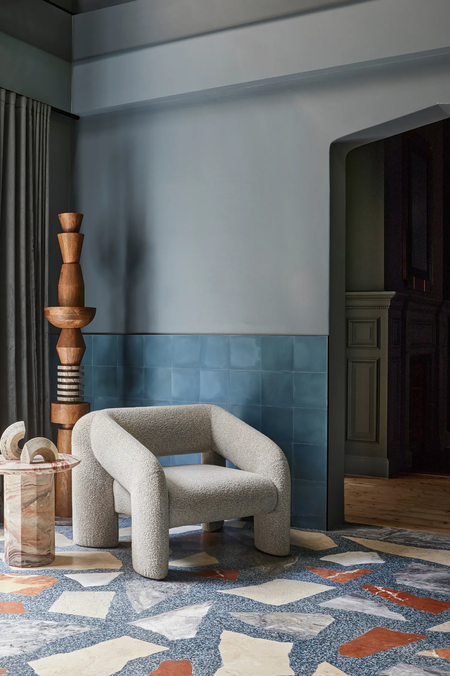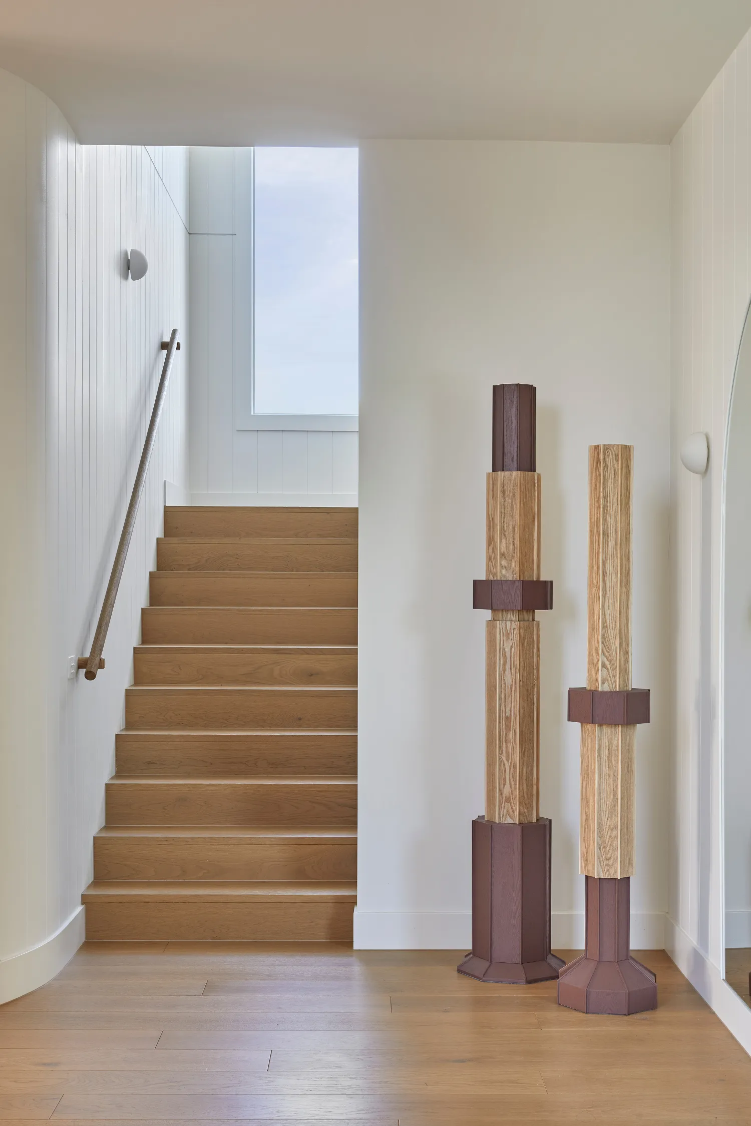 For designers and renovators wanting to introduce height and rhythm, the Talis floor sculpture combines natural ash veneer with brick-toned painted finishes, bringing warmth and architectural presence to interiors.