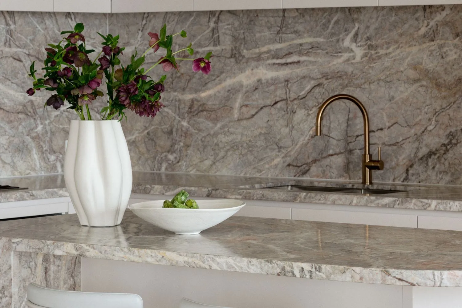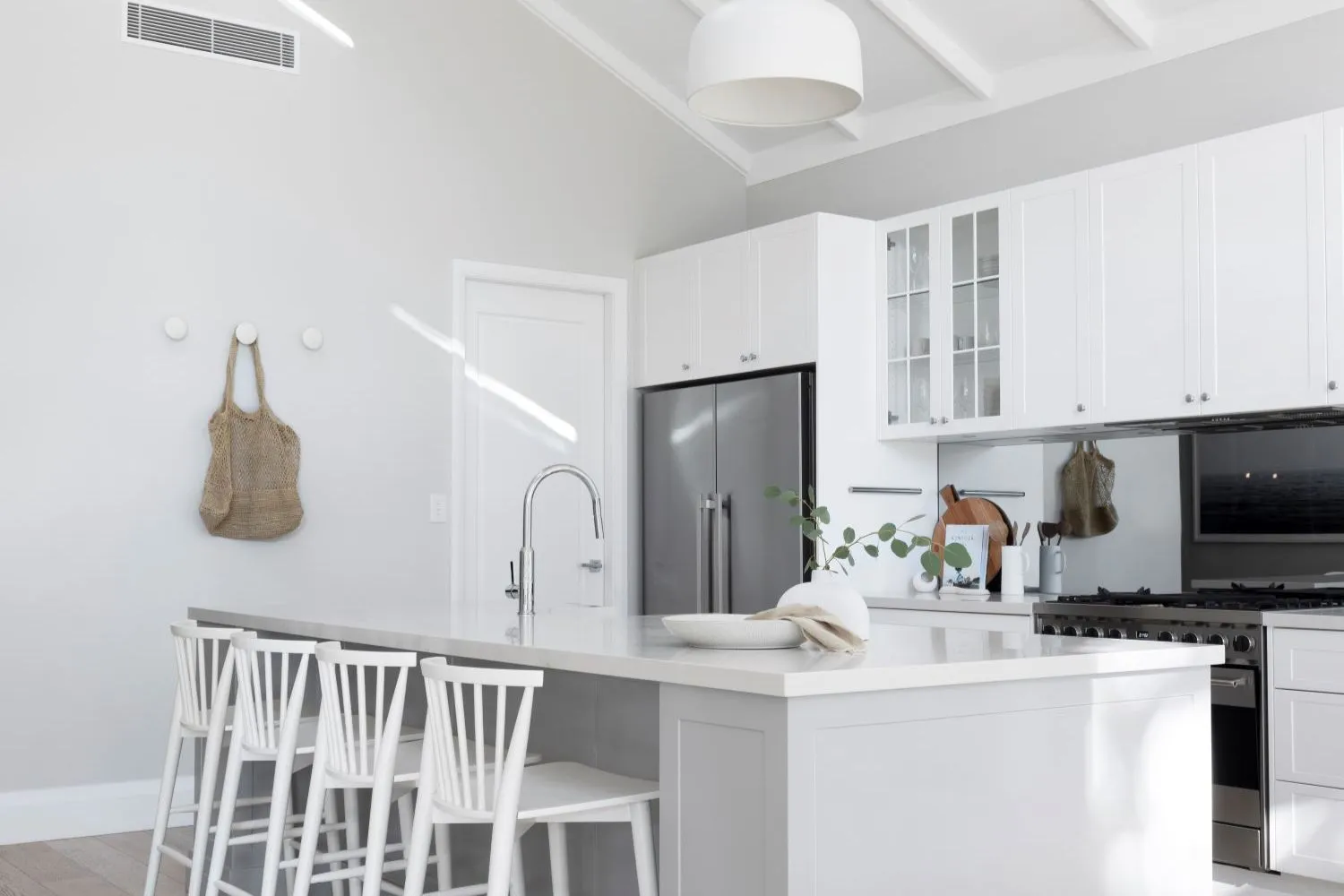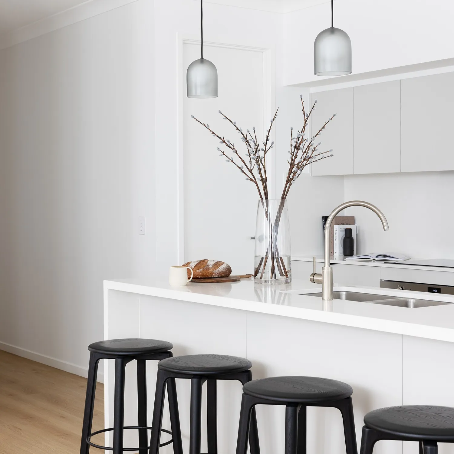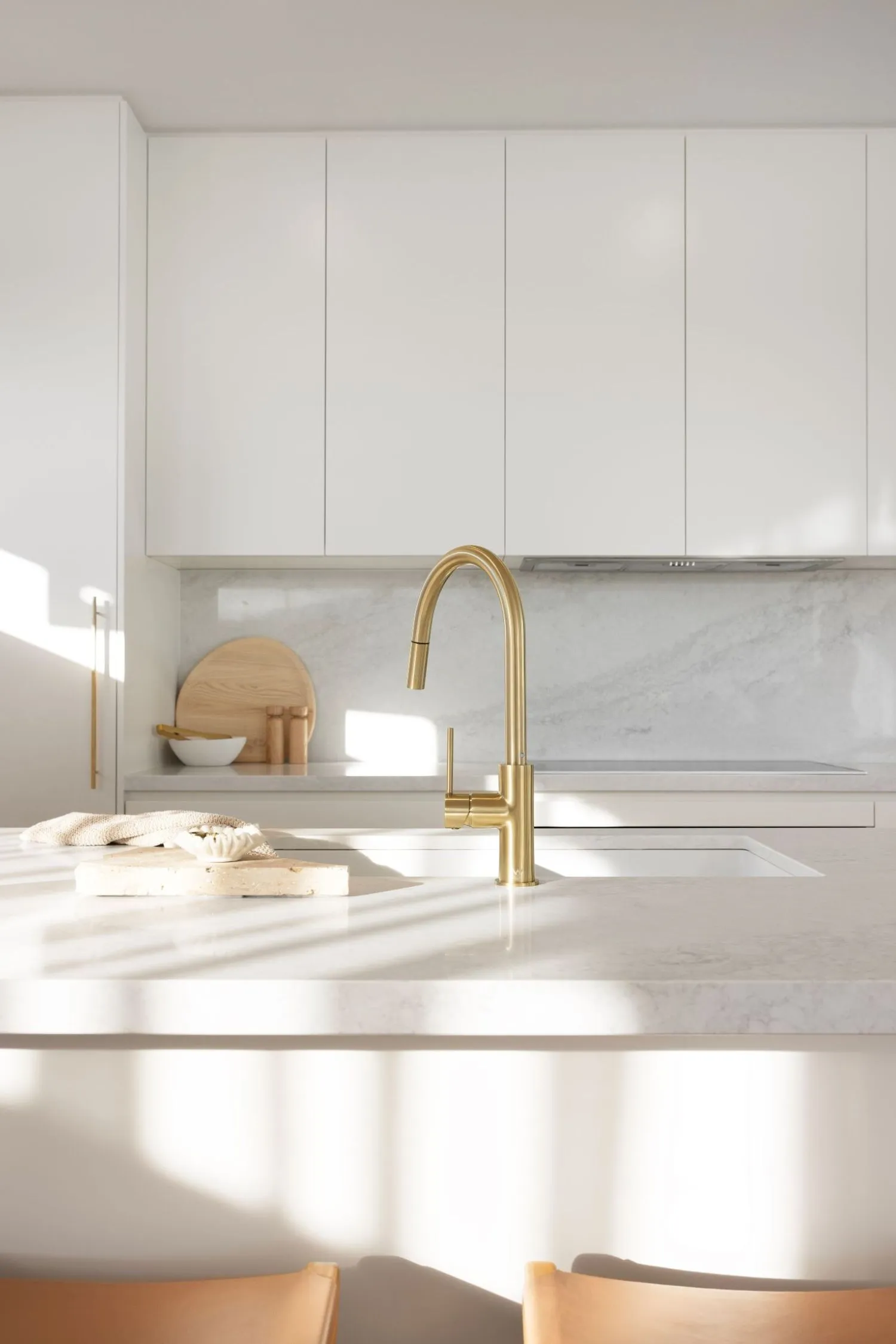 We love how the white tapware at Lumiere Lakes feels cohesive to the laidback kitchen, allowing the textures of the space to stand out.