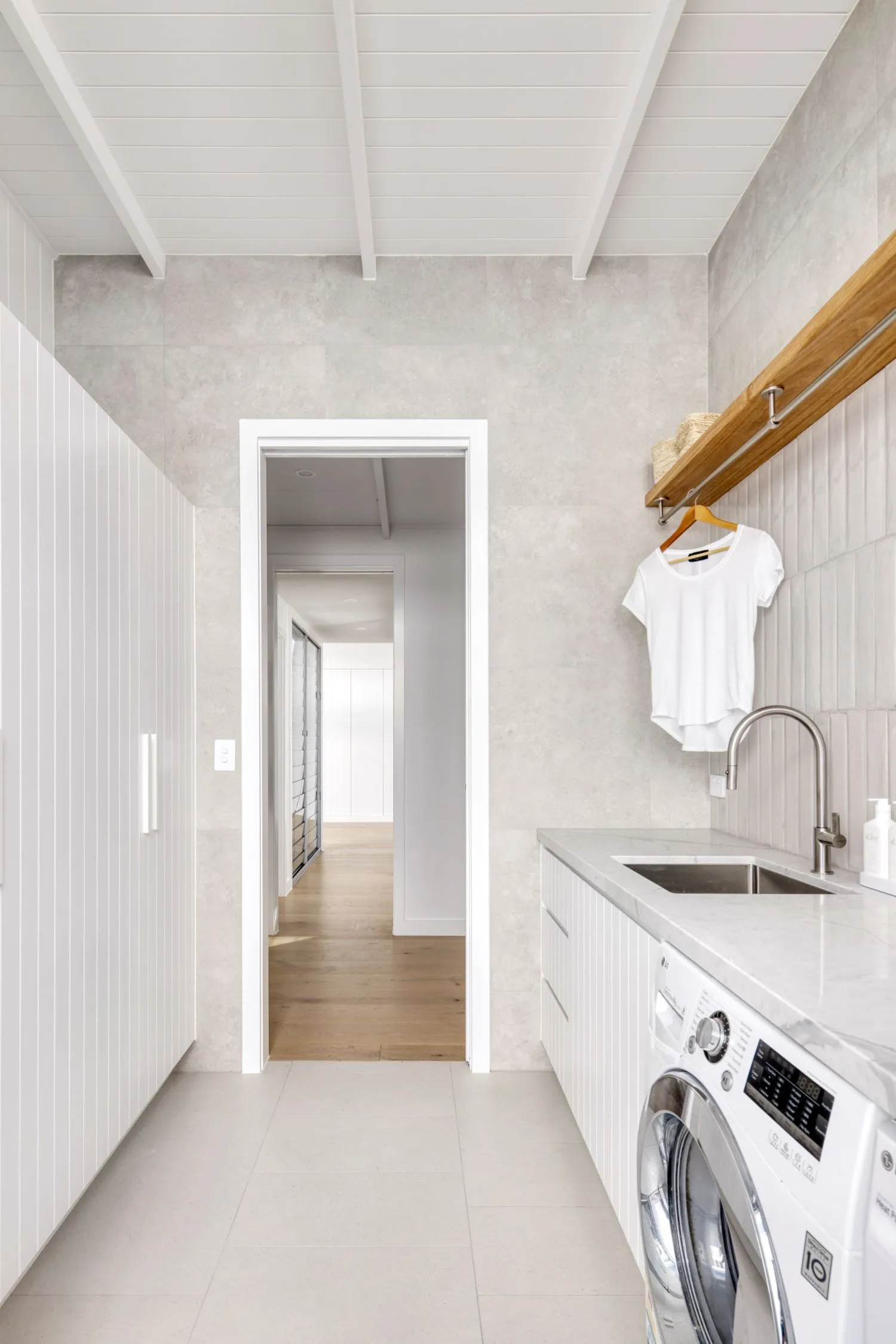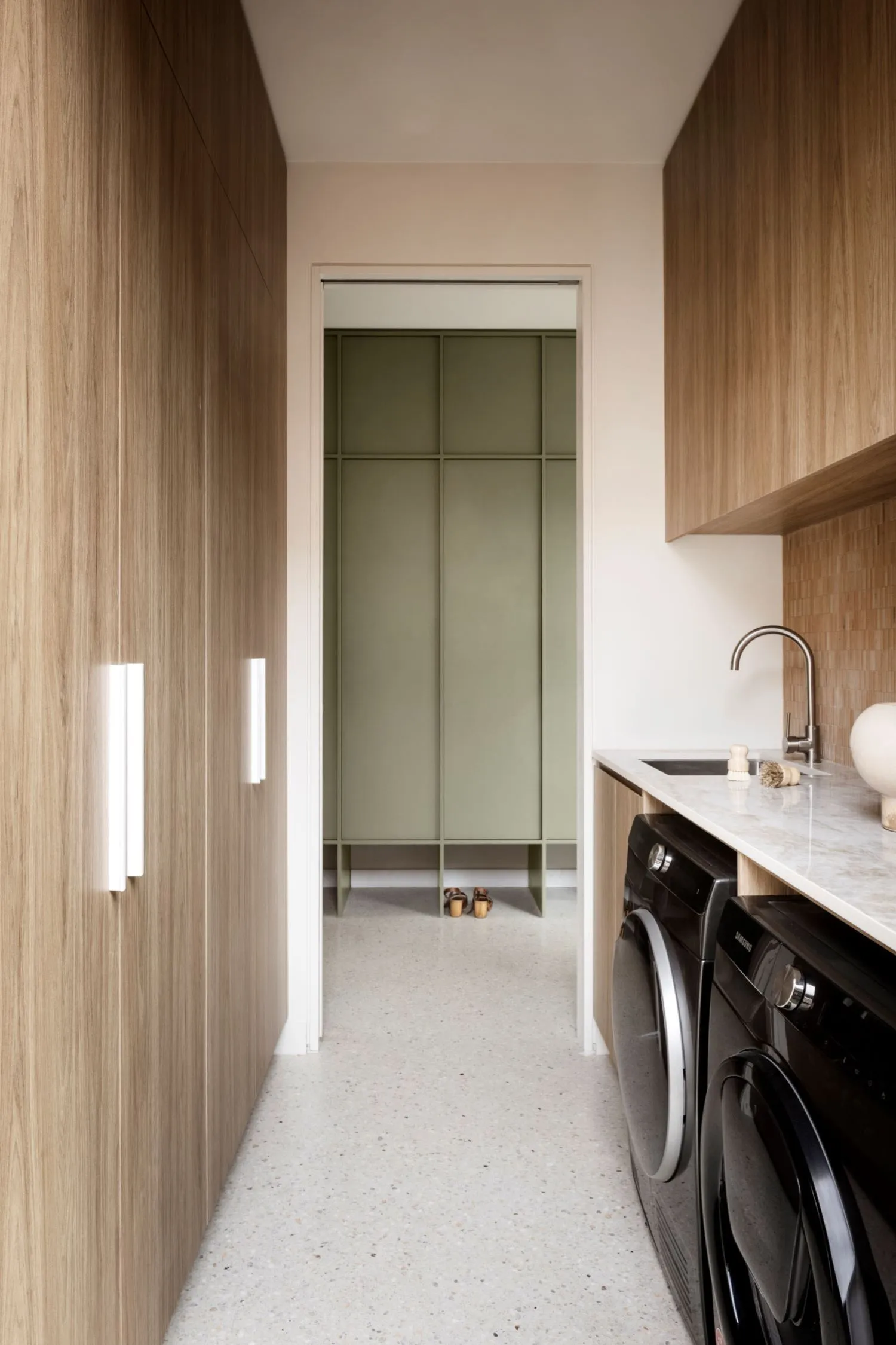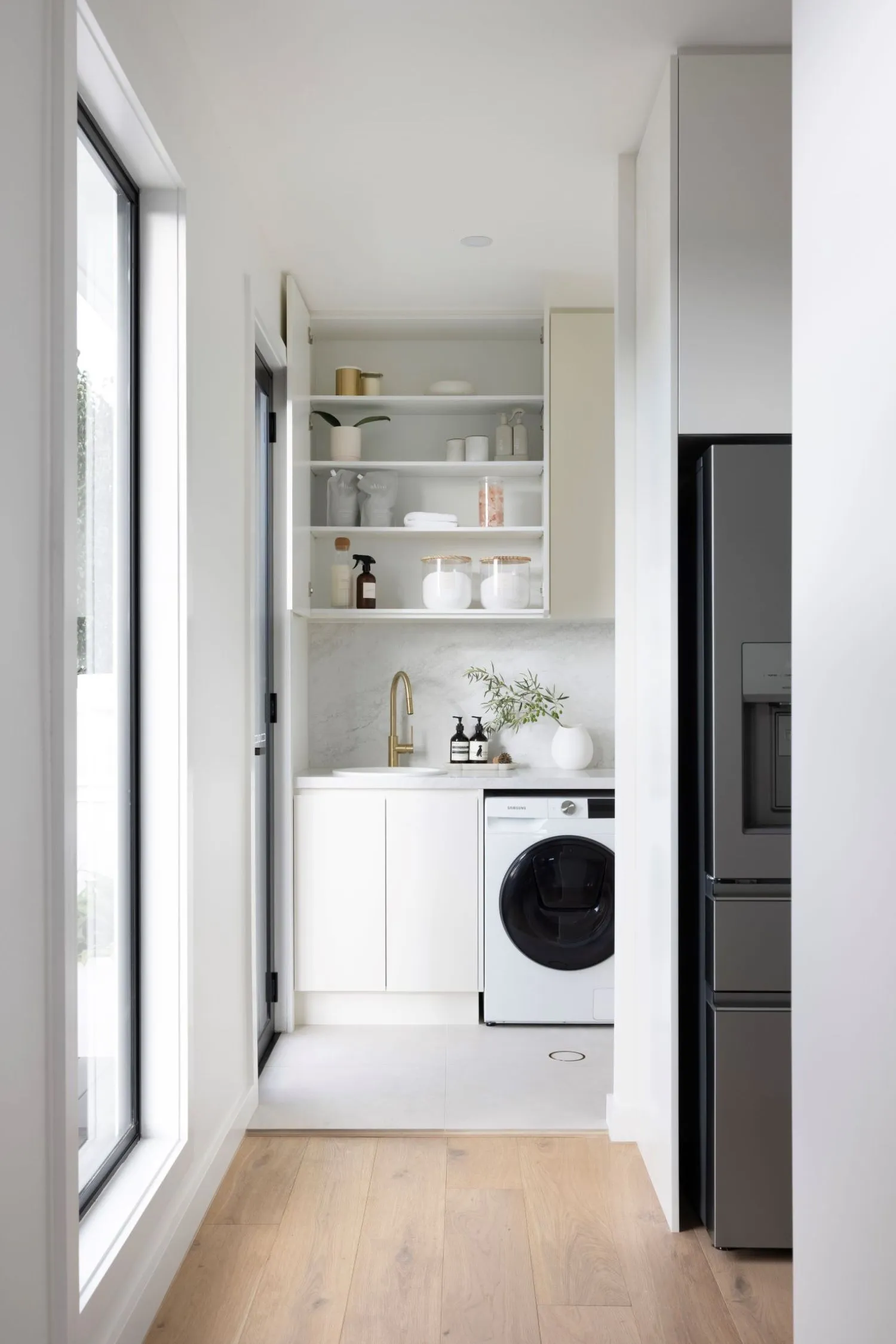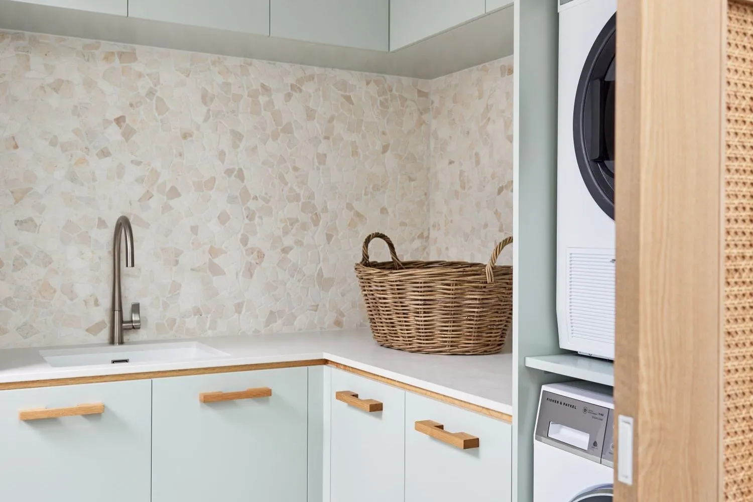 It’s not necessary for laundry room cabinets to match kitchen cabinets, however, we do recommend maintaining a cohesive design and aesthetic throughout your home, even if the spaces are directly connected. If you want to change it up between the two spaces, consider using similar materials, finishes, or tones and hues, to establish visual connection. This will ensure a harmonious flow, while still allowing you some flexibility for customisation.