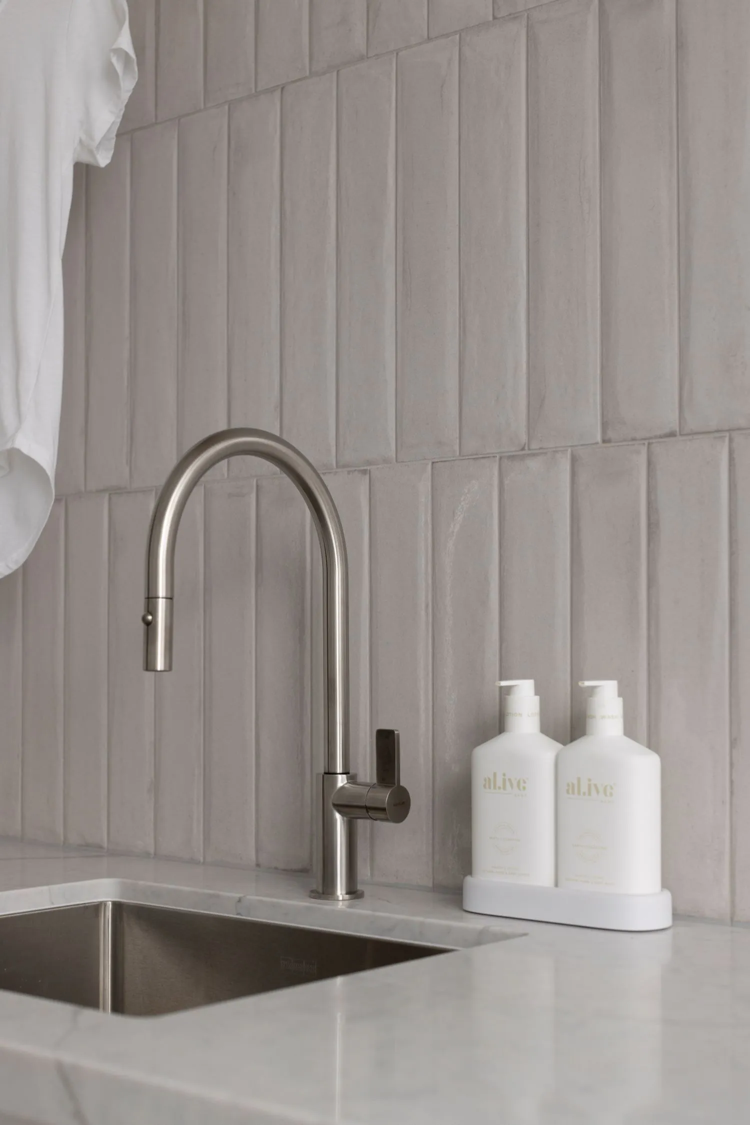 A marble splashback is perfect for creating a luxe look in your laundry. You can opt for real marble and even match it with other areas within your home, such as your kitchen splashback, or opt for porcelain tiles with a marble look. Either way, marble’s subtle veining adds elegance, making it a beautiful choice for refined aesthetics.
