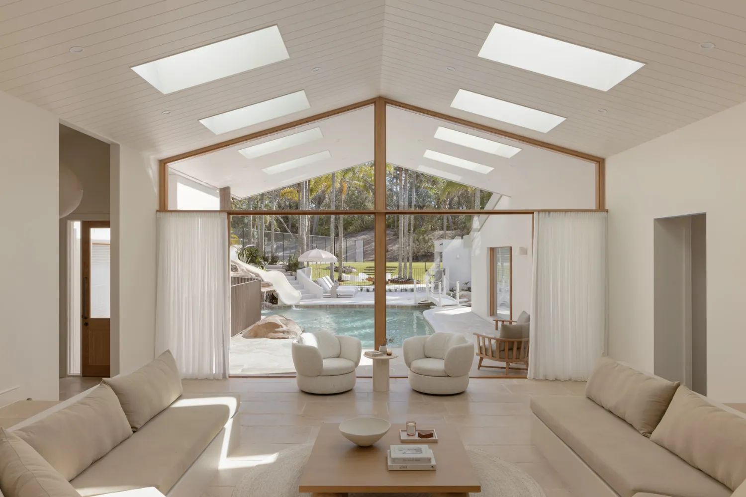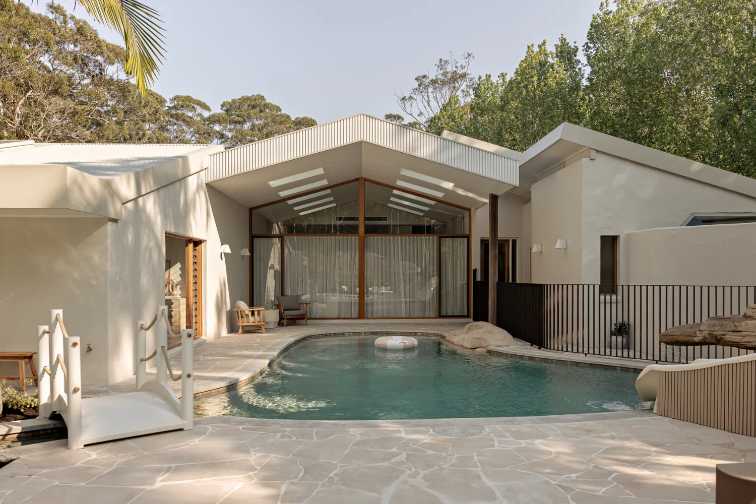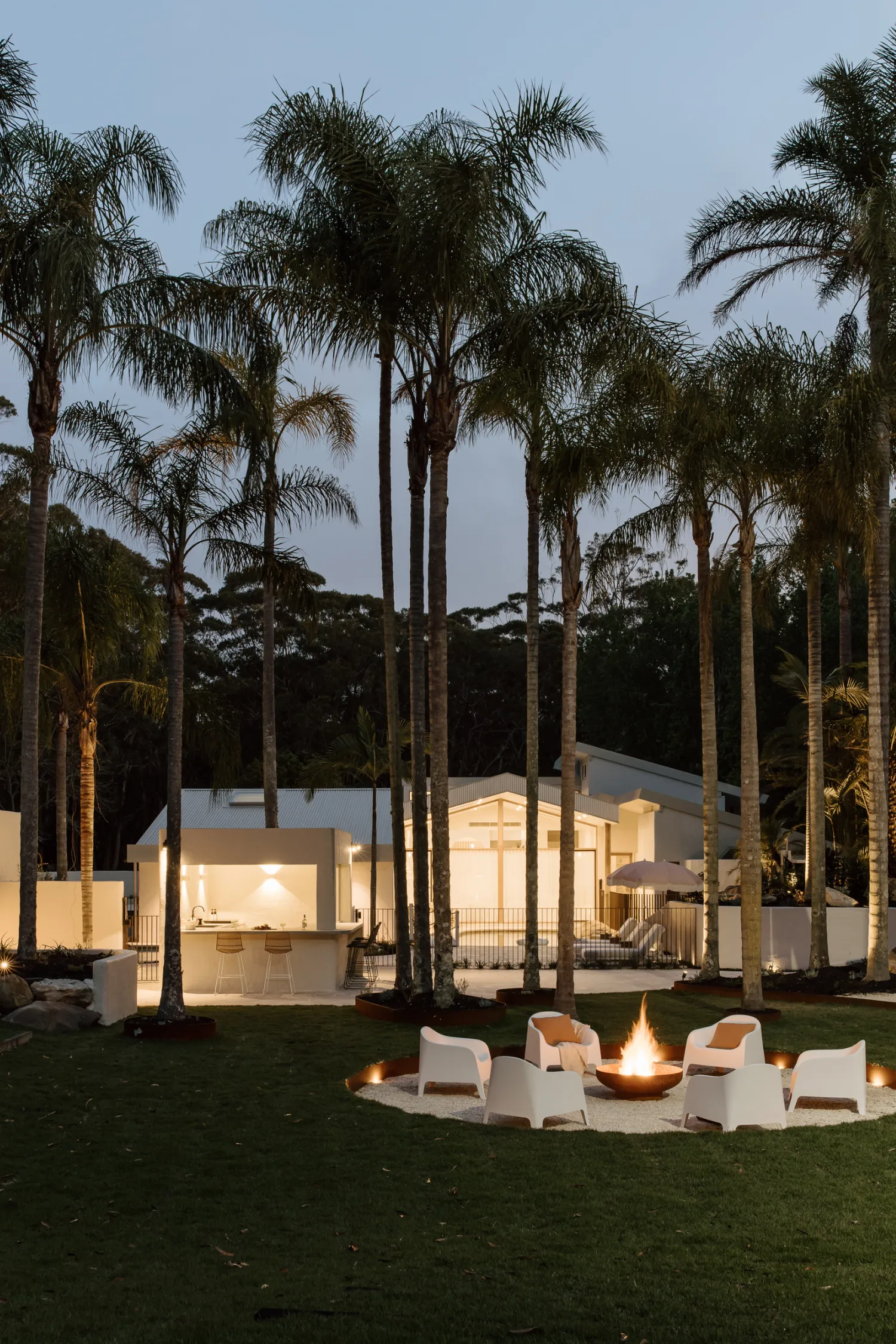 Picture a sparkling pool under swaying palm trees nestled in a breath-taking five-acre estate. Introducing The Ambers: a luxurious family home transformed into the ultimate resort-style getaway in Port Stephens. We’re not overstating when we say that this home is a complete dream, with minimalist magic and supreme tactility that creates a sanctuary for cherished moments.
