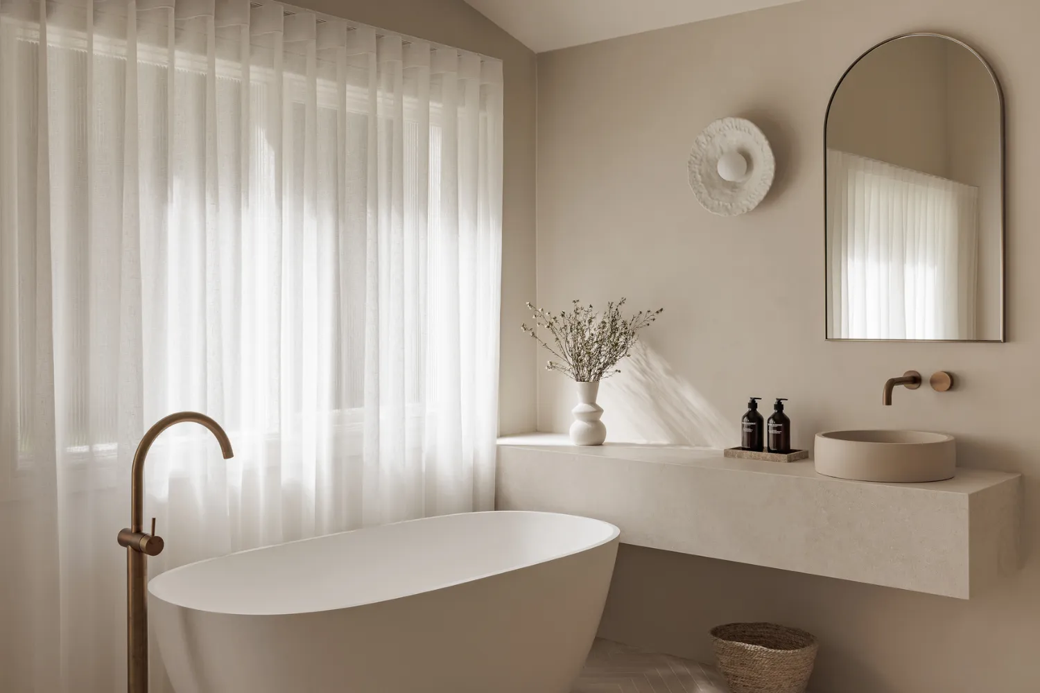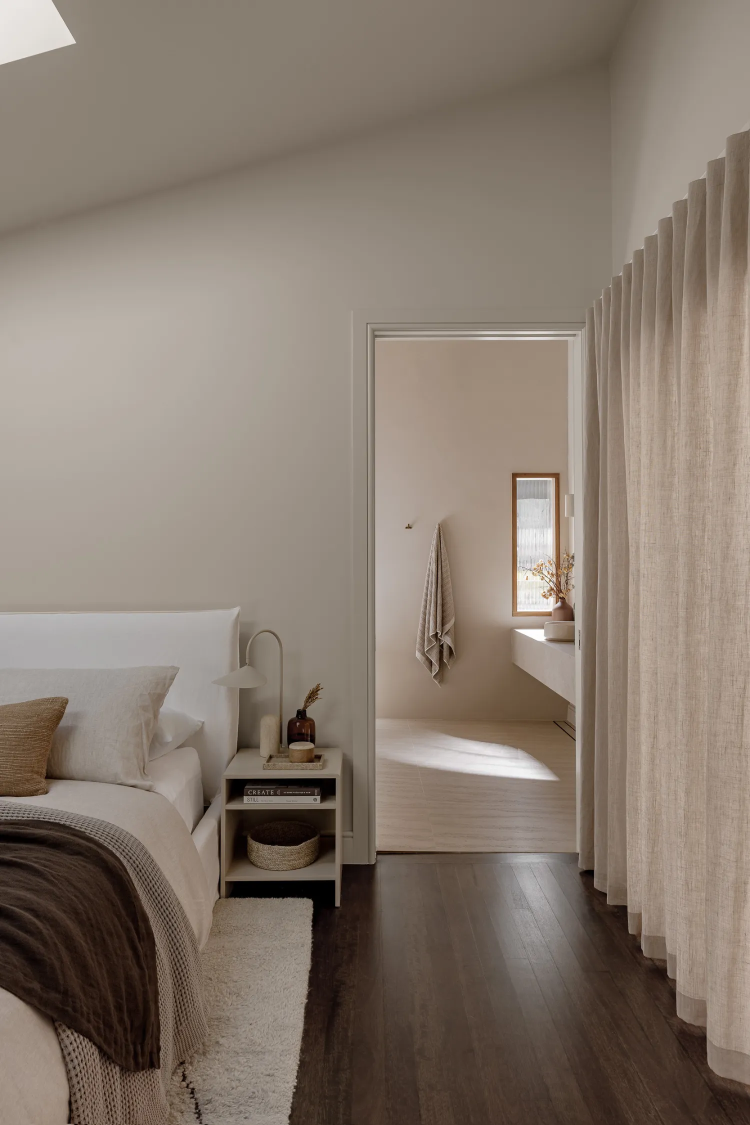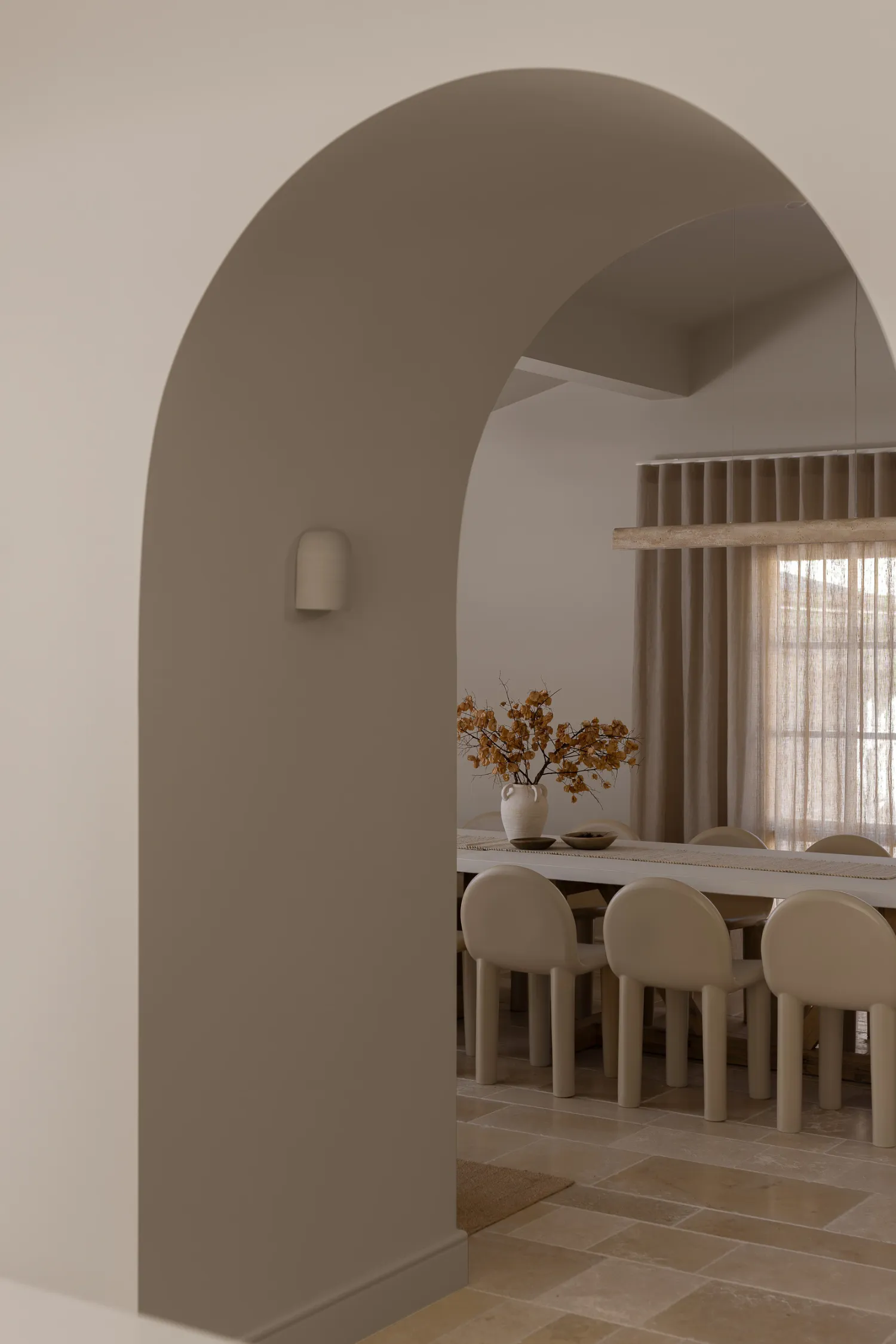 The rooms at The Ambers unfold with a sense of ease, where arched openings and layered materials create a rhythm that feels almost sculptural. Natural light dances through the space, catching the texture of the walls and the sheen of hand-selected finishes. It’s minimalist style, but every surface, tone, and detail adds to the home’s unique sense of warmth and soul.