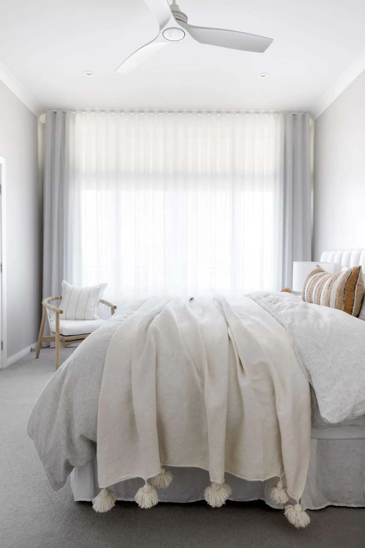 Layer different textures through cushions, throws, curtains and rugs. These pieces will add depth and warmth to your bedroom. Don’t forget to mix materials for an extra layer.